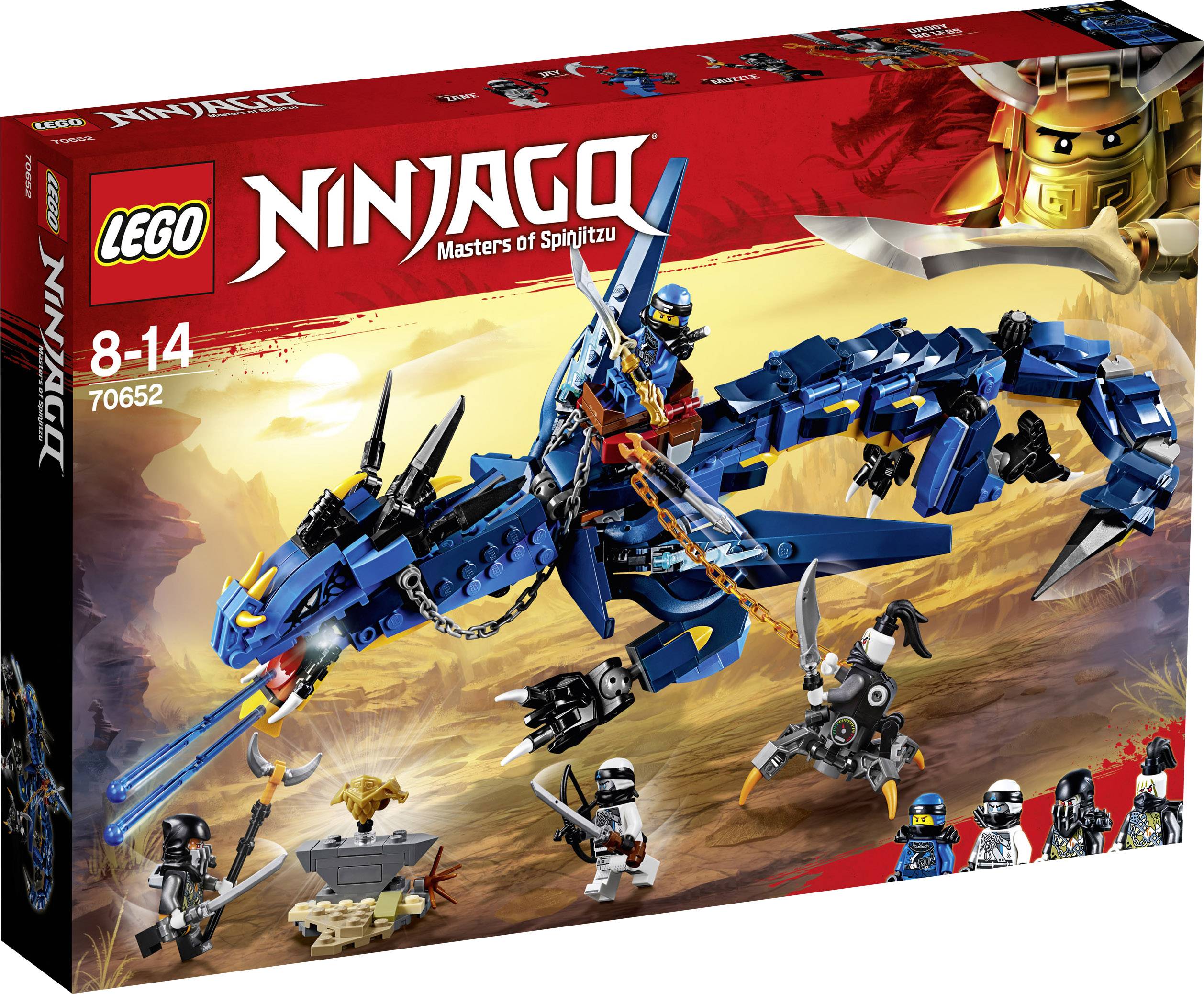 Enthält 4 LEGO® NINJAGO® Minifiguren: Jay, Zane, den Beinlosen Jäger und den Maulkorb-Jäger. · Der Blitzdrache verfügt über einen abnehmbaren Minifigur-Sattel mit Zügeln, ein aufklappbares Maul mit 2 „Blitz“-Shootern (mit Federmechanismus), einen beweglichen Hals, bewegliche Flügel, Beine und Füße sowie eine Peitschenschwanzfunktion und 4 Befestigungsstellen, an denen der Beinlose Jäger seine Vergeltungssteinkette festhaken kann. · Öffne das Drachenmaul und feure die Shooter mit Federmechanismus ab. · An dem Ständer hängt ein abnehmbares Element der Drachenrüstung: die Drachenbrustplatte. · Die Ausrüstung umfasst die zu sammelnde Drachenknochenklinge, die Kettensichel und das Tanto von Jay, das baubare Katana sowie Pfeil und Bogen von Zane, die Vergeltungssteinkette des Beinlosen Jägers sowie das baubare Katana und den Speer des Maulkorb-Jägers. · Zu diesem coolen Kinderspielzeug gehört auch noch Jays Köcher. · Stell deine Lieblingsszenen aus der TV-Serie „NINJAGO®: Meister des Spinjitzu“ nach und erlebe spannende Action bei deinen Rollenspielen. · Die Sets 70650 Flügel-Speeder, 70653 Mutter der Drachen, 70654 Drachen-Fänger und 70655 Drachengrube enthalten noch weitere Elemente der zu sammelnden Drachenrüstung. · Erwecke den Blitzdrachen mit dem separat erhältlichen LEGO® BOOST Set „Programmierbares Roboticset“ (17101) zum Leben. Der Blitzdrache ist 12 cm hoch, 49 cm lang und 14 cm breit.