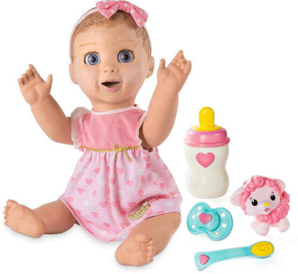 Die Pflege von Luvabella macht Spaß mit ihren vier interaktiven Accessoires! Benutze ihren Löffel, um sie zu füttern und sie wird vor Freude kauen! Wenn sie nicht voll ist, kann sie dich um mehr bitten! Helfen Sie Luvabella nach dem Essen, neue Tiernamen und Geräusche mit ihrem Lamby-Spielzeug zu lernen! Wenn sie wählerisch wird, braucht sie nur ihren Schnuller. Wenn es Zeit ist, nach einem großen Spieltag ins Bett zu gehen, wiegen Sie sie mit ihrer Flasche in den Schlaf.