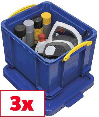 Ideal für Büro, Lager und zu Hause. Universell, Verschließbar, stapelbar. Transparent für einen schnellen Überblick. Ausführung: mit Deckel, Farbe: blau, Inhalt: 35 Liter