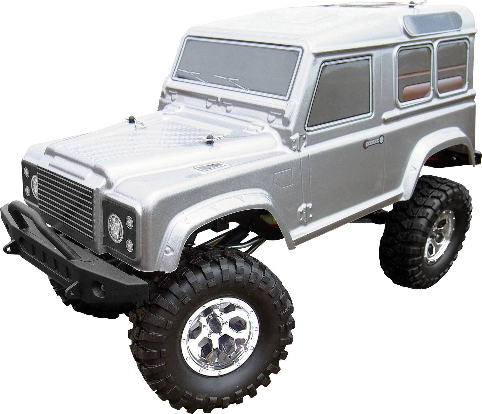 Diese neue RTR Crawler Serie von Amewi beinhaltet alles, was zum Crawlen gebraucht wird! Eine hochwertige Ausstattung gepaart mit Top Technik wie z.B. einen wasserdichten Hobbywing WP-1625 Regler, ein geschütztes 3 kg Lenkservo, 1500mAh 7,2V Akku, eine fein justierbare 2,4 GHz Empfangsanlage und ein Metallchassis runden dieses tolle Paket ab. Der Regler verfügt über eine Mountainbreak, was ein Abrollen im Gelände verhindert. In Verbindung mit den weichen High Grip Reifen und der hohen Bodenfreiheit ergibt sich damit ein super Einsteigerpaket in die interessante Welt der Crawler und Scaler. Das Fahrzeug verfügt über extreme Klettereigenschaften und auch die mögliche Schräglage machen das Modell im Gelände zu einem Top-Produkt, welches keine Wünsche offen lässt. Das Fahrzeug ist zusätzlich bereits von Werk aus mit einer LED Beleuchtungsanlage V/H ausgestattet. Der gesamte Aufbau des Modells ist auf das wesentliche beschränkt und ist somit auch für den absoluten Einsteiger bestens geeignet! Die Optik des Modells ist an den bekannten Defender angelehnt. Alle Decals sind bereits fertig angebracht. Lediglich der Akku muss geladen werden und der Sender mit Batterien bestückt werden, dann kann es losgehen!