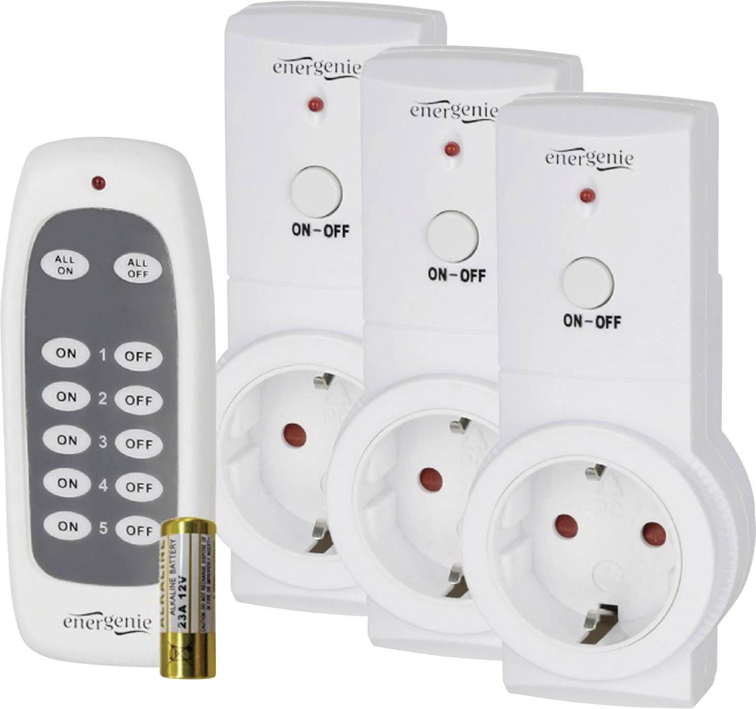 3 x Funk-Steckdose + Funk-Fernbedienung inkl. Batterie + Benutzerhandbuch.