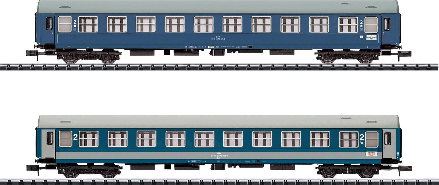 2 Schnellzugwagen 2. Klasse der Bauart Y/B der Bahngesellschaften CFR und MAV. Einsatz: Hochwertiger Fernverkehr, hier im D262/263 Orient-Express 1987.