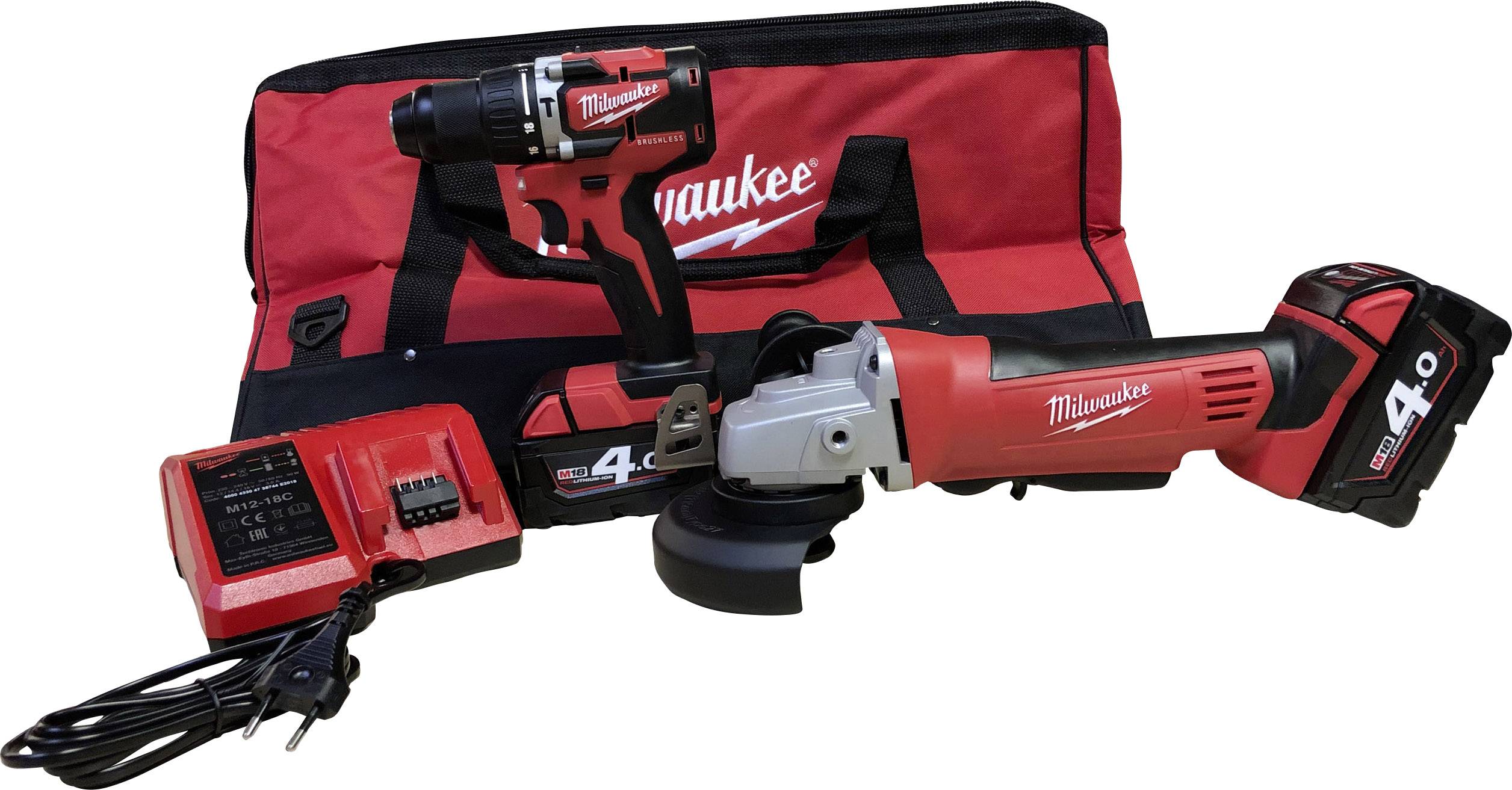 Akku-Schlagbohrschrauber, Winkelschleifer 18V 4.0Ah Li-Ion inkl. 2. Akku, inkl. Koffer