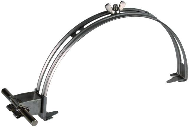 Dachleitungshalter stetig verstellbar mit Leitungshalter DEHNgrip, zum Befestigen von Fangleitungen auf dem Firstziegel z. B. bei Ziegeldächer. Mit loser Leitungsführung, seitlich verstellbar (oben Mitte bis unten).
