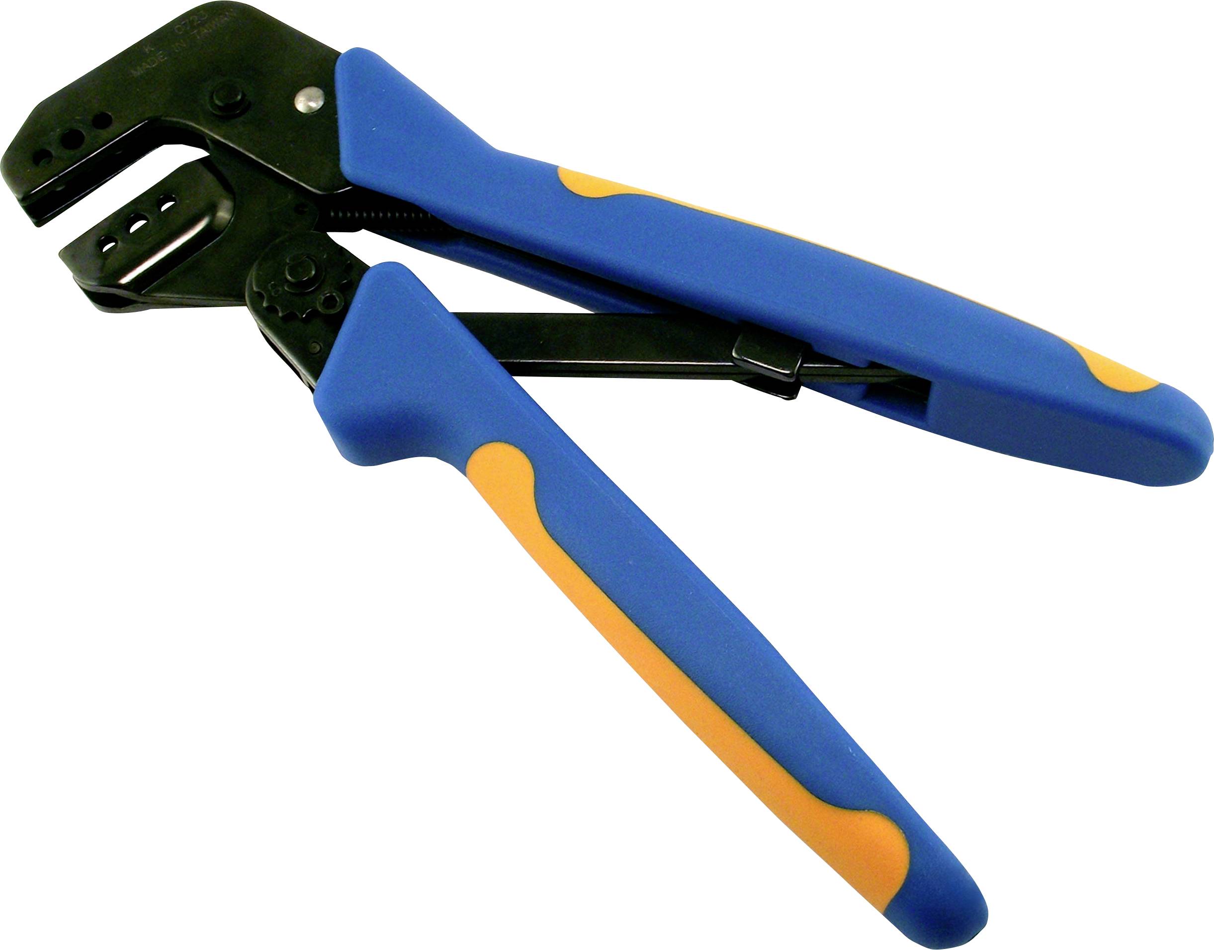 Handzange für verschiedene Matrizen z. B. für farbig vorisolierte Kabelschuhe und Verbinder (PIDG und PASTI-GRIP) und Modular Plugs.