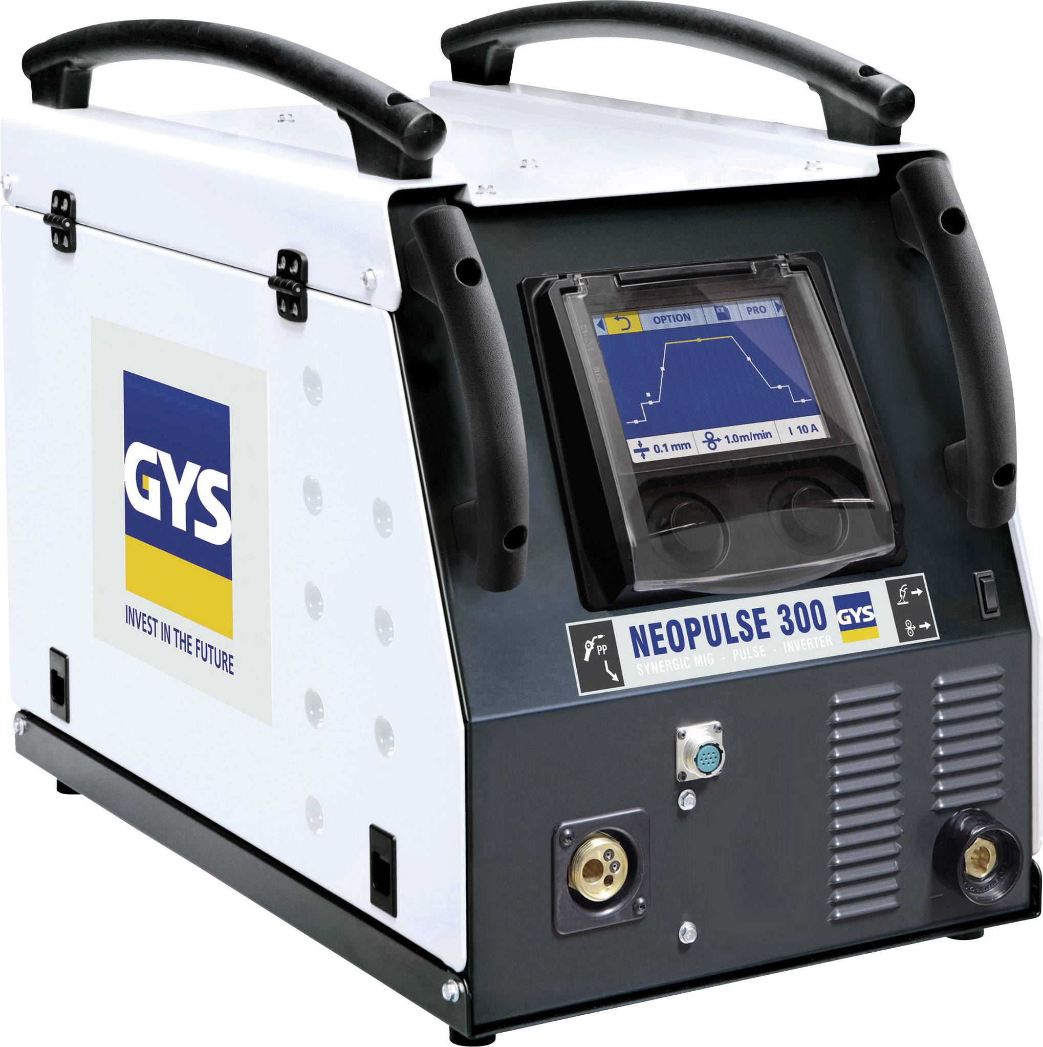 Die NEOPULSE 300 ist ein synergisch geregeltes MIG/MAG Dopppelimpuls-Inverterschweißgerät, das sich ideal für industriell fertigende Werkstätten eignet. Mit der NEOPULSE 300 können optional PUSH-PULL-Brenner eingesetzt werden. Netzanschluss 3-phasig, zwischen 200 und 460 V.