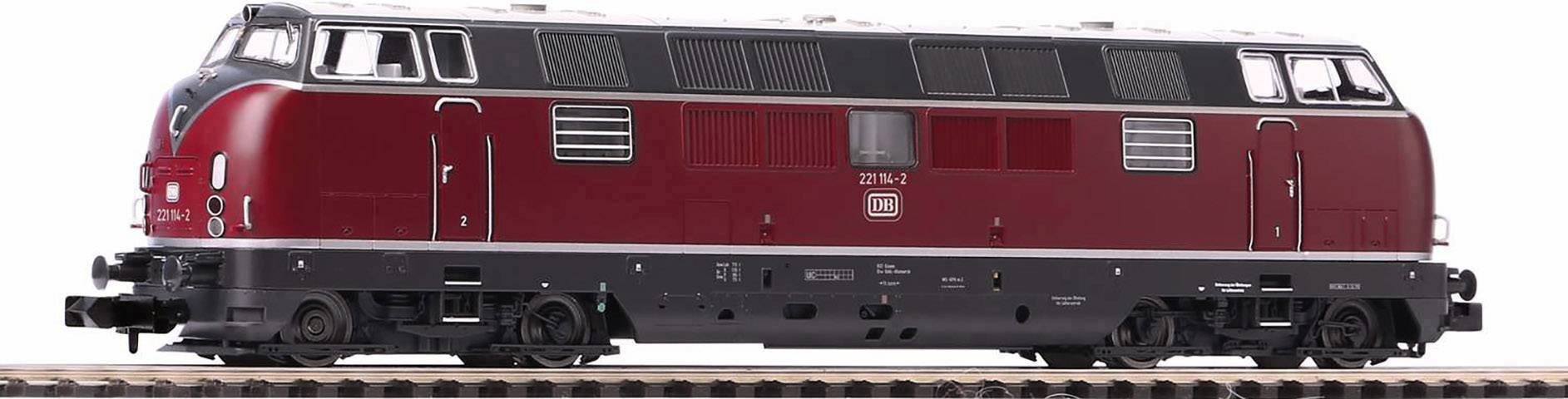 Das PIKO Modell der Kultlokomotive V 200.1 als BR 221 in der Epoche IV Ausführung für den Einsatz vor Personen und Güterzügen überzeugt mit einer gelungenen Darstellung der bulligen Frontform, scharfen Gravuren, feinen Gitter- und Auspuffschlotnachbildungen auf dem Dach sowie detaillierte Drehgestellen mit vielen Details. Für hervorragende Fahreigenschaften des zeitgemäßen Modells sorgt ein starker, ruhiglaufender Motor, der alle vier Achsen antreibt. Die BR 221 von PIKO besitzt eine aufgeräumte Platine mit Next18-Schnittstelle, überzeugt mit einer übersichtlichen, funktionssicheren und wartungsarmen Konstruktion und ist für eine unkomplizierte Nachrüstung mit Sounddecoder und