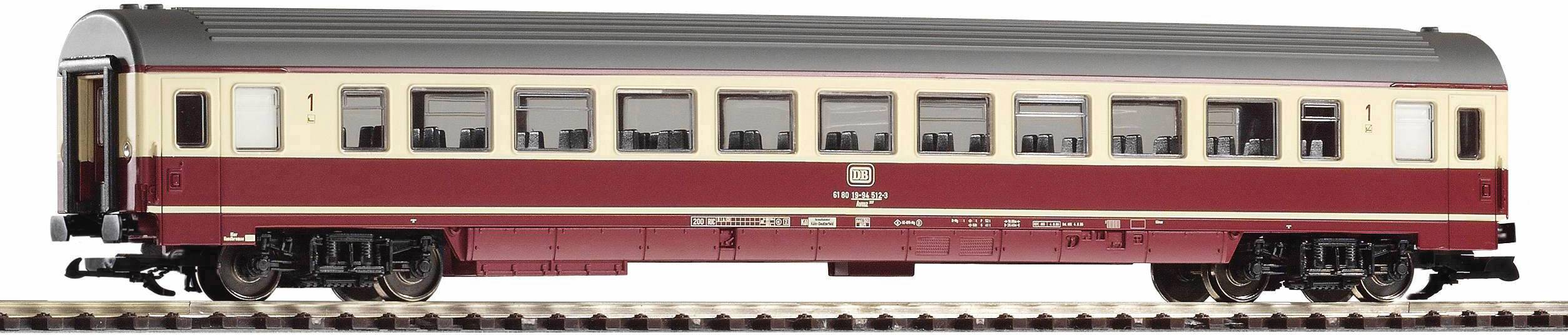 Mit den neuen Schnellzugwagen auf Basis eines Bpmz realisiert PIKO einen langjährigen Wunsch viele Modellbahnfreunde der Gartenbahn und offeriert einen passenden Wagen für vielfältigste Einsatzzwecke zu einem besonders günstigen Preis-Leistungsverhältnis! Die Wagen überzeugen durch feinste Lackierung und Bedruckung, die robuste Konstruktion, Inneneinrichtung, schlierenfreie Fenster, scharf gravierte Drehgestelle und sind für eine unproblematische Nachrüstung einer Innenbeleuchtung vorbereitet. Die Wagen im typischen rotbeigen Erscheinungsbild der Deutschen Bundesbahn in der Epoche IV stellen zusammen mit den blaubeigen Wagen #37660 die idealen Fahrzeuge zur Nachbildung von Intercity-Zügen mit der vielgelobten PIKO BR 103 #37440 dar.