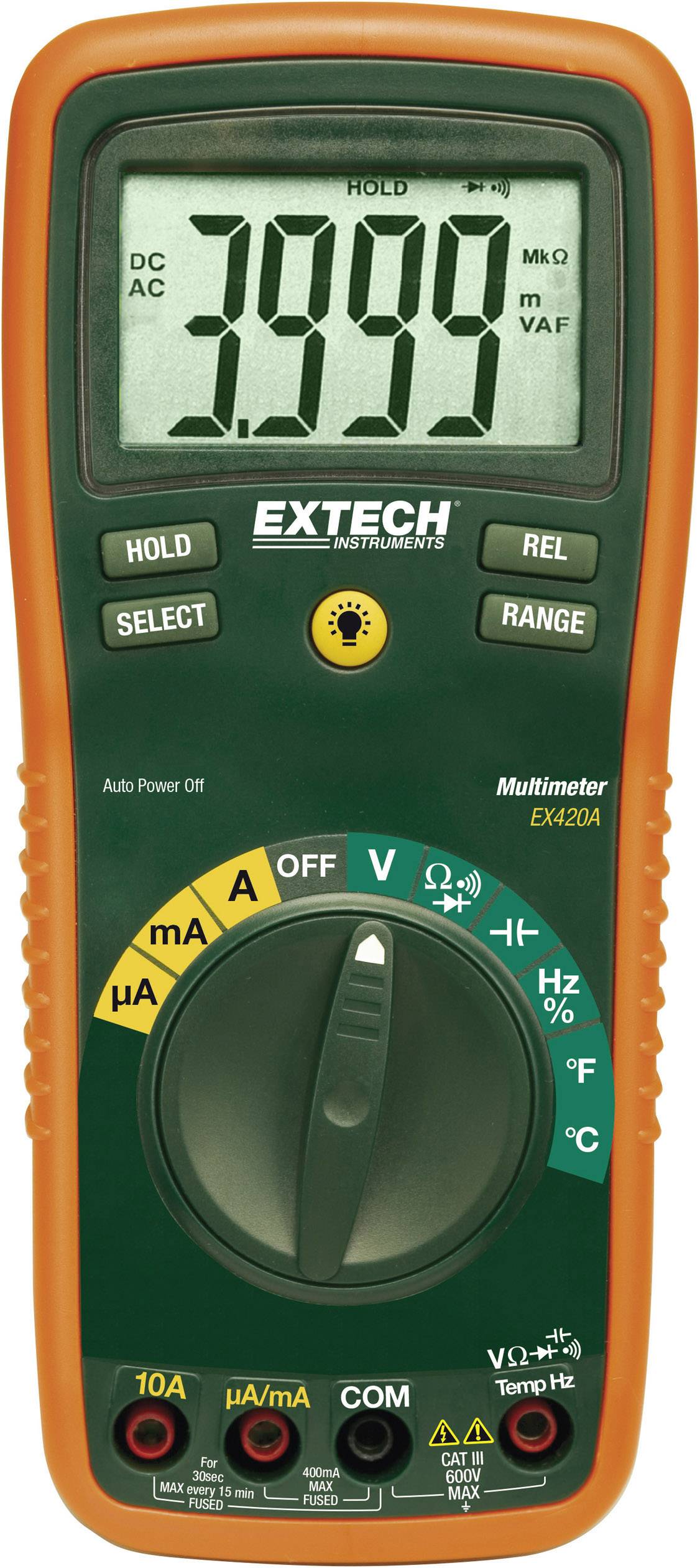 Das Multimeter EX420A ist robust und verlässlich. Ein preisgünstiges 4000 Counts-Messgerät mit hintergrundbeleuchteter Anzeige.