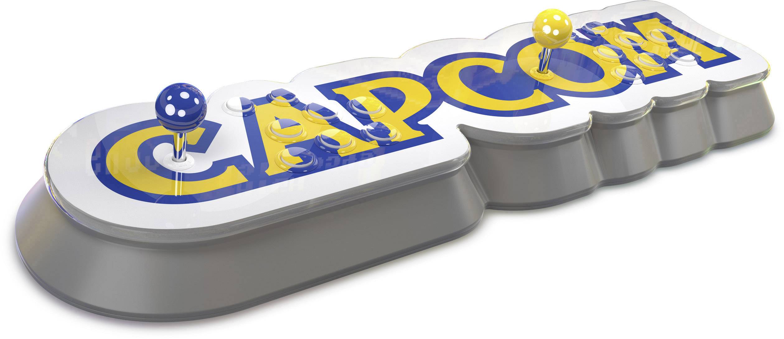 Die formschöne Heimkonsole ist als ikonisches, zweifarbiges Capcom-Logo gestaltet und bietet klassisches Einzel- und Mehrspieler-Arcade-Vergnügen