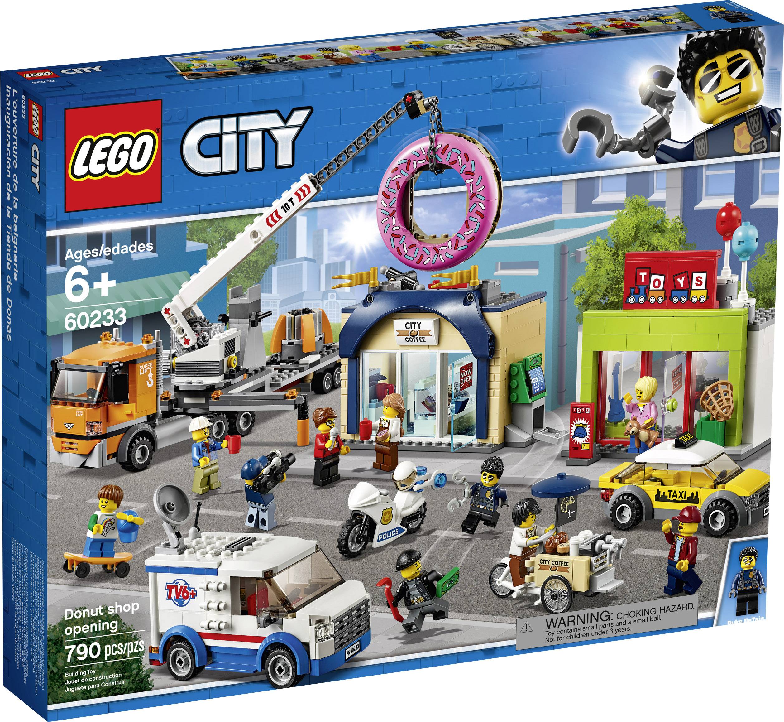Das actiongeladene Set wurde von der animierten LEGO® City TV-Serie inspiriert und sorgt bei allen kleinen Stadtentdeckern für jede Menge Freude. Das coole Spielset „Große Donut-Shop-Eröffnung“ (60233) umfasst einen Lkw mit Krananhänger mit ausfahrbarem Kranausleger, Plattform und ausfahrbaren Stabilisatoren, einen Übertragungswagen mit Dach zum Öffnen und Satellitenschüssel, ein Taxi, ein Polizeimotorrad und ein Lastenfahrrad mit Kaffeeverkauf (neu ab Juni 2019). Dieses interessante Spielset enthält zudem ein Spielzeuggeschäft sowie einen Donut-Shop mit Geldautomaten und Freigabefunktion, um den riesigen Donut vom Dach des Gebäudes rollen zu lassen. Mit Instructions PLUS wird jedem LEGO Baumeister ein tolles Bauerlebnis geboten. Diese digitalen Bauanleitungen gibt es jetzt in der LEGO Life App für Smartphones und Tablets. Diese benutzerfreundlichen und intuitiven digitalen Bauanleitungen ermöglichen es den Baumeistern, ihr Modell heranzuzoomen, zu drehen und mithilfe des speziellen Geistermodus zu visualisieren. Instructions PLUS eignet sich zudem perfekt für jüngere Baumeister, da es sie durch den Bauvorgang leitet und ein stärkeres Gefühl der Unabhängigkeit sowie tolle Erfolgserlebnisse bietet. Dieses coole Konstruktionsspielzeug enthält 10 Minifiguren.