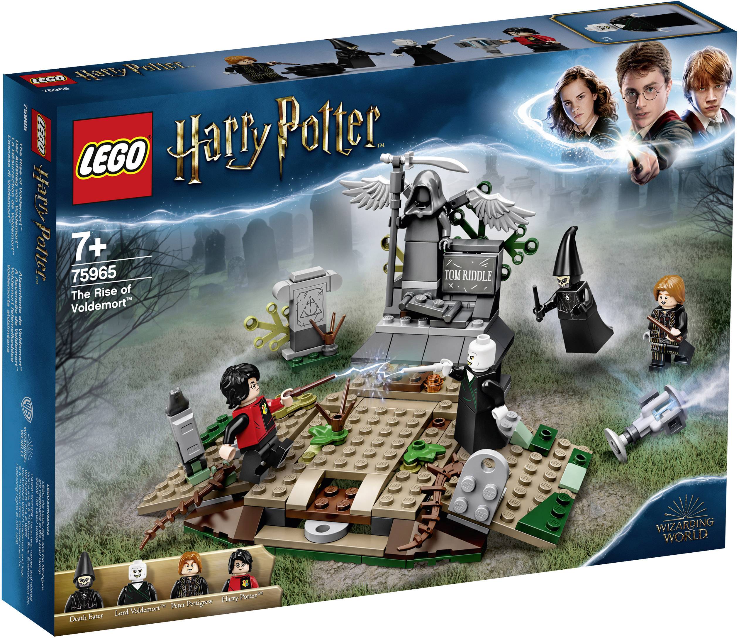 Mit dem Set „Der Aufstieg von Voldemort™“ (75965) liegen Magie, Abenteuer und Action in der Luft! Die legendäre Szene aus „Harry Potter und der Feuerkelch™“ wird Harry Potter auf dem gruseligen Friedhof gegen Tom Riddles Grabstein gepresst, während der hinterlistige Peter Pettigrew einen Zaubertrank zubereitet. Voldemort erscheint auf magische Weise durch das Ziehen an einem Hebel aus LEGO Steinen und ruft seinen Todesser. Nachdem Harry Potter vom Grabstein frei kommt, beginnt das Duell. Das tolle Geschenk für Kinder steckt voller Magie, Überraschungen und spektakuläre Duelle – junge Hexen und Zauberer brauchen also ihre Fähigkeiten zur Verteidigung gegen die dunklen Künste, um Harry zu helfen!