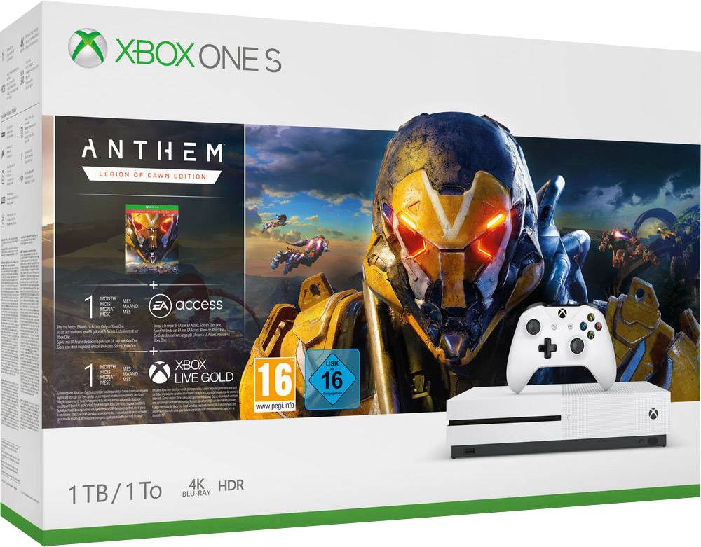 Microsoft Xbox One S 1TB Weiß Anthem: Legion of Dawn Edition (digitale Vollversion), 1 Monat Xbox Live Gold (Probemitgliedschaft)