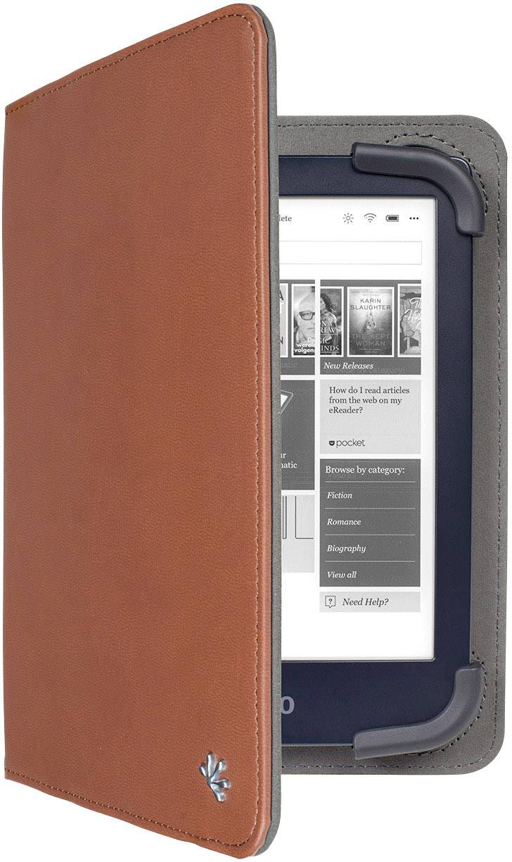 Das Gerät wird mit kräftigen, elastischen Ecken am Cover befestigt. Die Schützhülle ist deshalb für verschiedene eReader-Typen mit den Maßen 6“ bis 7“ geeignet und fixiert das Gerät sicher. Alle Öffnungen und Tasten des eReaders sind weiter optimal bedienbar.