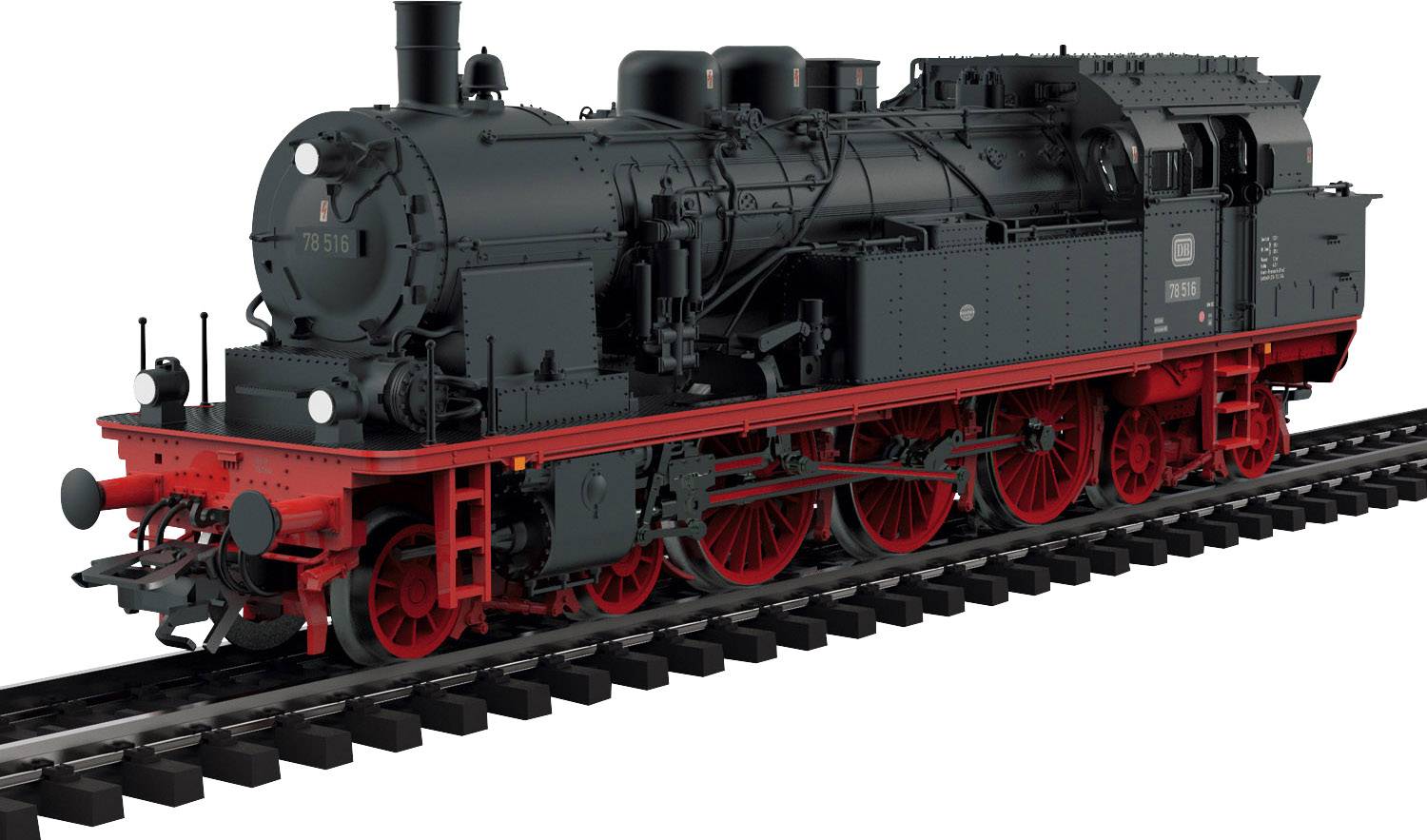 Mit Digital-Decoder mfx. Geregelter Hochleistungsantrieb mit Schwungmasse im Kessel. 3 Achsen angetrieben. Haftreifen. Lokomotive weitgehend aus Metall. Eingerichtet für Rauchsatz 72270. Fahrtrichtungsabhängig wechselndes Dreilicht-Spitzensignal und Rauchsatzkontakt konventionell in Betrieb, digital schaltbar. Zwei rote Schlusslichter separat digital schaltbar. Zusätzlich ist die Führerstandsbeleuchtung digital schaltbar. Beleuchtung mit wartungsfreien warmweißen und roten Leuchtdioden (LED). Zahlreiche angesetzte Griffstangen und Leitungen aus Metall. Befahrbarer Mindestradius 360 mm. Kolbenstangenschutzrohre und Bremsschläuche liegen bei. Länge über Puffer ca. 17 cm.
