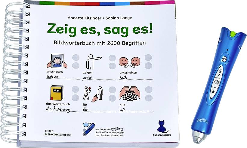 Starterset mit Anybook Audiostift und Bildwörterbuch „Zeig es, sag es!“ mit über 2600 Begriffen, METACOM Symbolen und Audioaufnahmen