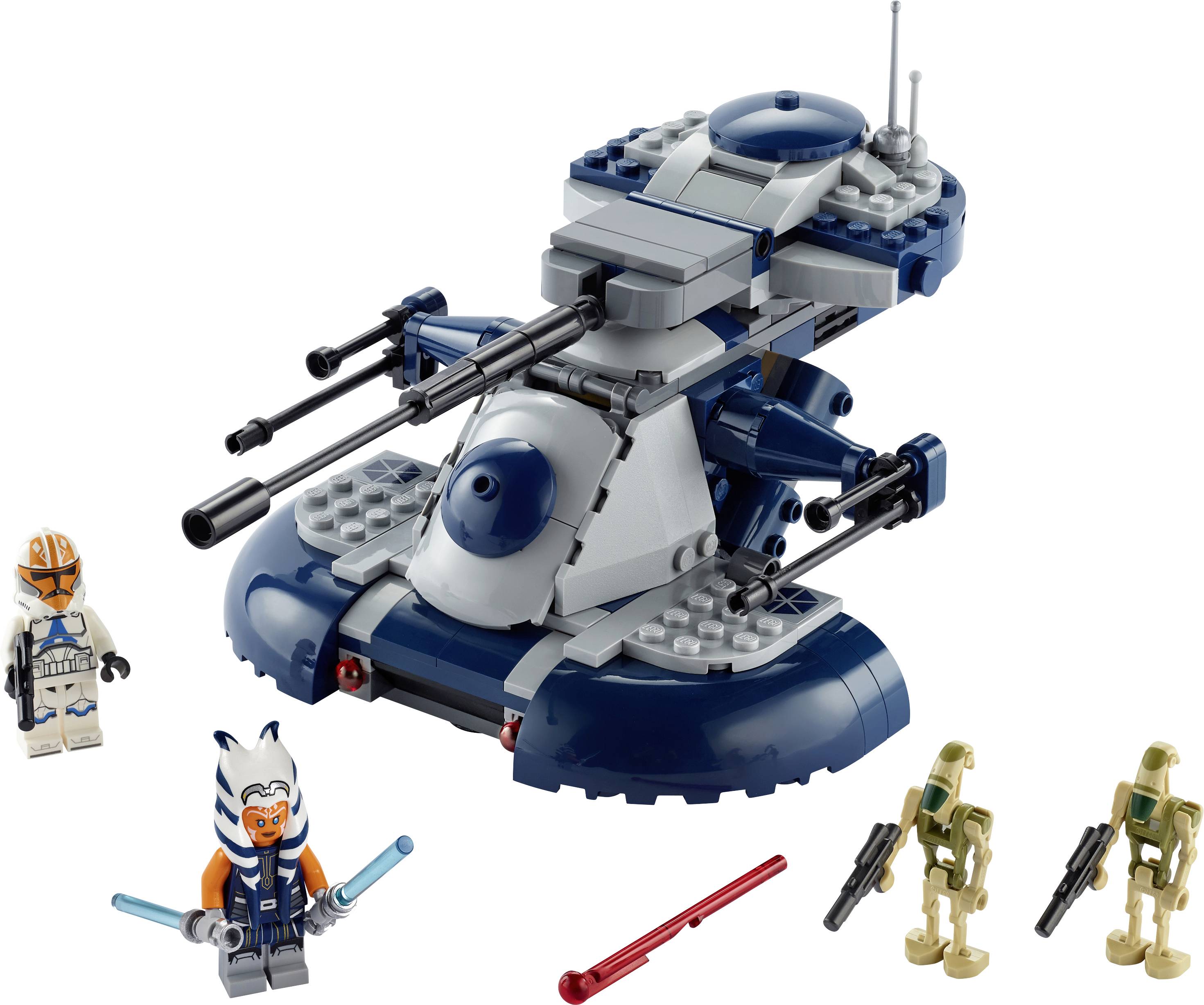 Mit dem LEGO® Star Wars™ Bauset „Armored Assault Tank (AAT™)“ (75283) zu „Star Wars: The Clone Wars“ können sich Kinder stundenlang beschäftigen und spannende Action erleben. Der AAT™ verfügt über jede Menge realistische Details, um Kinder kreativ zu beschäftigen. Hierzu zählen die aufklappbaren Luken mit Platz für Kampfdroiden, die LEGO® Minifiguren, 2 Shooter (mit Federmechanismus) und ein drehbarer Geschützturm mit hochschwenkbarer Kanone. Die 501. Legion misst sich mit den Kampfdroiden! Zu diesem Set gehören 2 LEGO® Star Wars™ Minifiguren – Ahsoka Tano und Ahsokas Clone Trooper – ein Kampfdroide als AAT™-Pilot und ein Kampfdroide als weitere LEGO® Figuren sowie passende Ausrüstung für actionreiche Rollenspiele. Dieses Bau- und Spielset ist ein fantastisches Geschenk, um jede LEGO® Star Wars™ Sammlung zu bereichern und auch andere Fans mitspielen zu lassen. Star Wars™ Action nach LEGO® Art! Schon seit 1999 bildet die LEGO® Gruppe kultverdächtige Raumschiffe, Fahrzeuge, Schauplätze und Figuren aus dem Star Wars™ Universum als Modelle aus LEGO® Steinen nach. Diese unglaublich erfolgreiche Themenwelt enthält die unterschiedlichsten Sets, um Fans jeden Alters zu begeistern!
