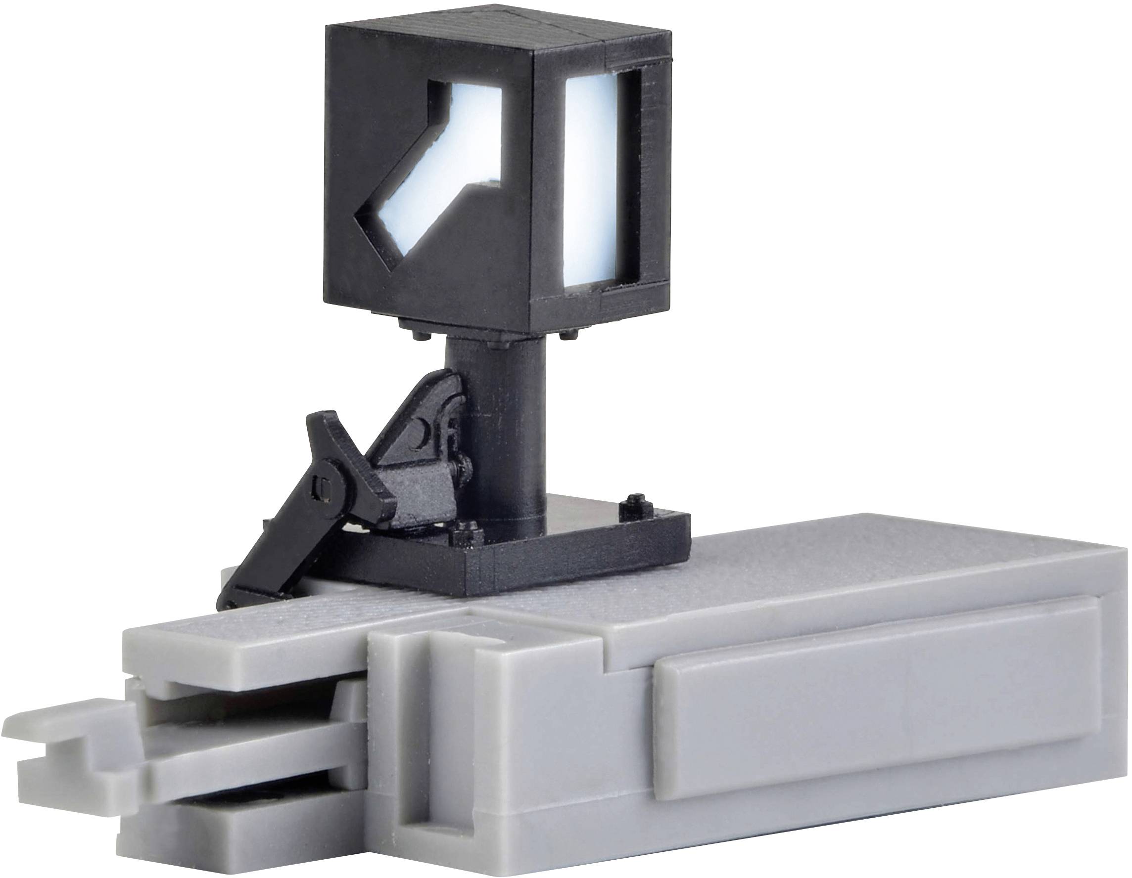Diese Weichenlaterne wird über ihren zugehörigen Adapter an der Stirnseite des Universalantriebs Art. 4560 angebaut und verwendet dessen Längsabtrieb. Die Weichenlaterne wird von einer weißen LED beleuchtet, der Anschluss erfolgt über braun-gelbe Kabel. Enthalten ist je ein Lampengehäuse für Rechts- und Linksabzweig. Maße: L 2,9 x B 2 x H 0,53 cm.
