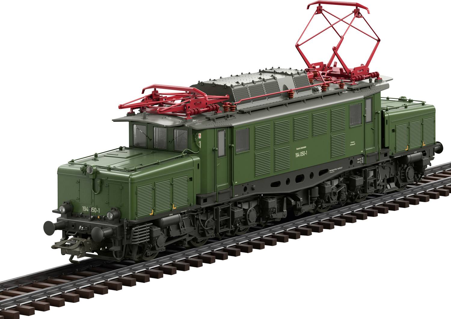 Vorbild: Schwere Güterzug-Elektrolokomotive Baureihe 194 der Deutschen Bundesbahn (DB). Chromoxidgrüne Grundfarbgebung. Lok-Betriebsnummer 194 050-1. Betriebszustand um 1982.