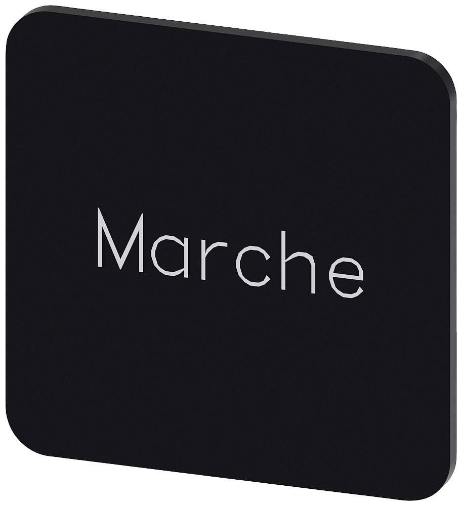 Bezeichnungsschild zum Kleben auf Gehäuse, Schildgrösse 22x22 mm, Schild schwarz, Schrift weiß, mit Beschriftung: Marche Bezeichnungsschild zur Beschriftung der SIRIUS ACT Befehls- und Meldegeräte.