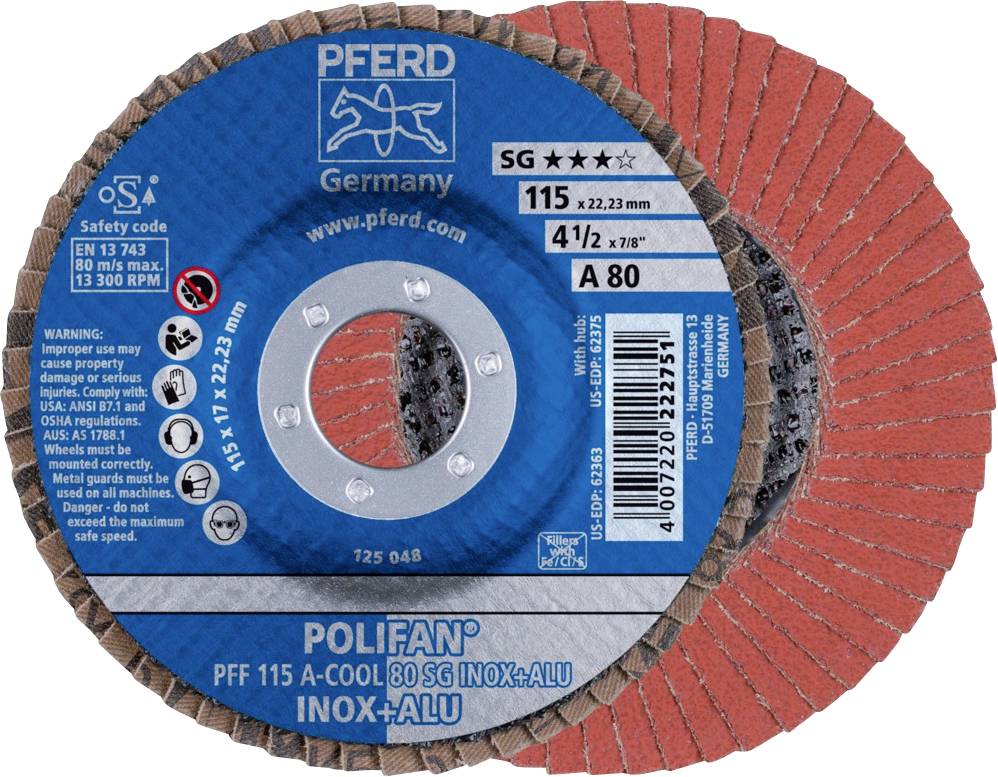 00097758623636, 04007220222751, PFERD TOOLS, 67658115, PFF 115 A-COOL 80 SG INOX+ALU, Fächerscheibe