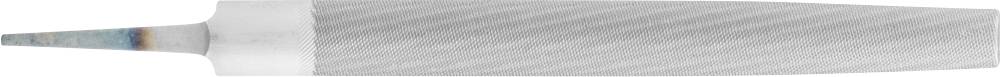 Halbrund-spitze Feile mit Hieb auf zwei Seiten. Ausführung mit Angel. Form E nach DIN 7261. Zur Bearbeitung von Radien und zum Feilen von halbrunden Profilen geeignet.