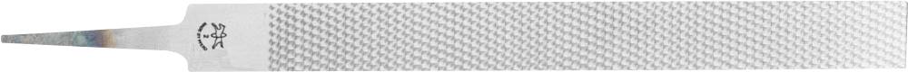Rechteckige Feile mit Hieb auf drei Seiten, flache Seiten mit Raspelhieb, eine Kante mit Feilhieb, eine Kante ungehauen. Form A nach DIN 7263. Ausführung mit Angel.