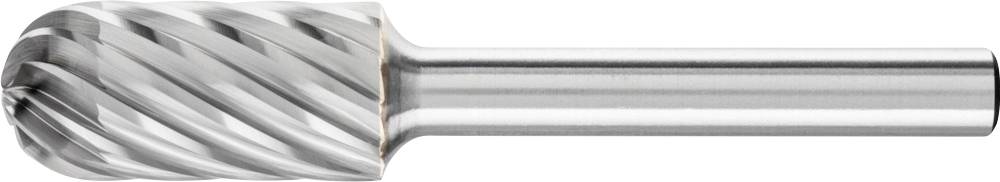 Walzenrundförmiger Frässtift nach DIN 8032. Kombination zylindrischer und kugelförmiger Geometrien.