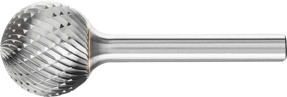 Kugelförmiger Frässtift nach DIN 8032 mit Verzahnung nach DIN 8033.GL = Gesamtlänge (Vollhartmetall) SL = Schaftlänge (Stahllangschaft)