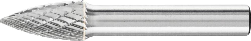 Spitzbogenförmiger Frässtift nach DIN 8032 mit Verzahnung nach DIN 8033, Spitze abgeflacht.GL = Gesamtlänge (Vollhartmetall) SL = Schaftlänge (Stahllangschaft)
