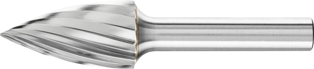Spitzbogenförmiger Frässtift nach DIN 8032 mit Verzahnung nach DIN 8033, Spitze abgeflacht.GL = Gesamtlänge (Vollhartmetall) SL = Schaftlänge (Stahllangschaft)