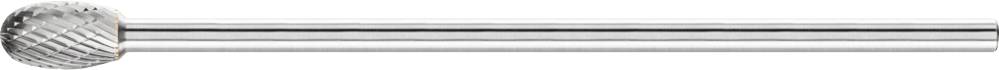 Tropfenförmiger Frässtift nach DIN 8032 mit Verzahnung nach DIN 8033. GL = Gesamtlänge (Vollhartmetall) SL = Schaftlänge (Stahllangschaft)