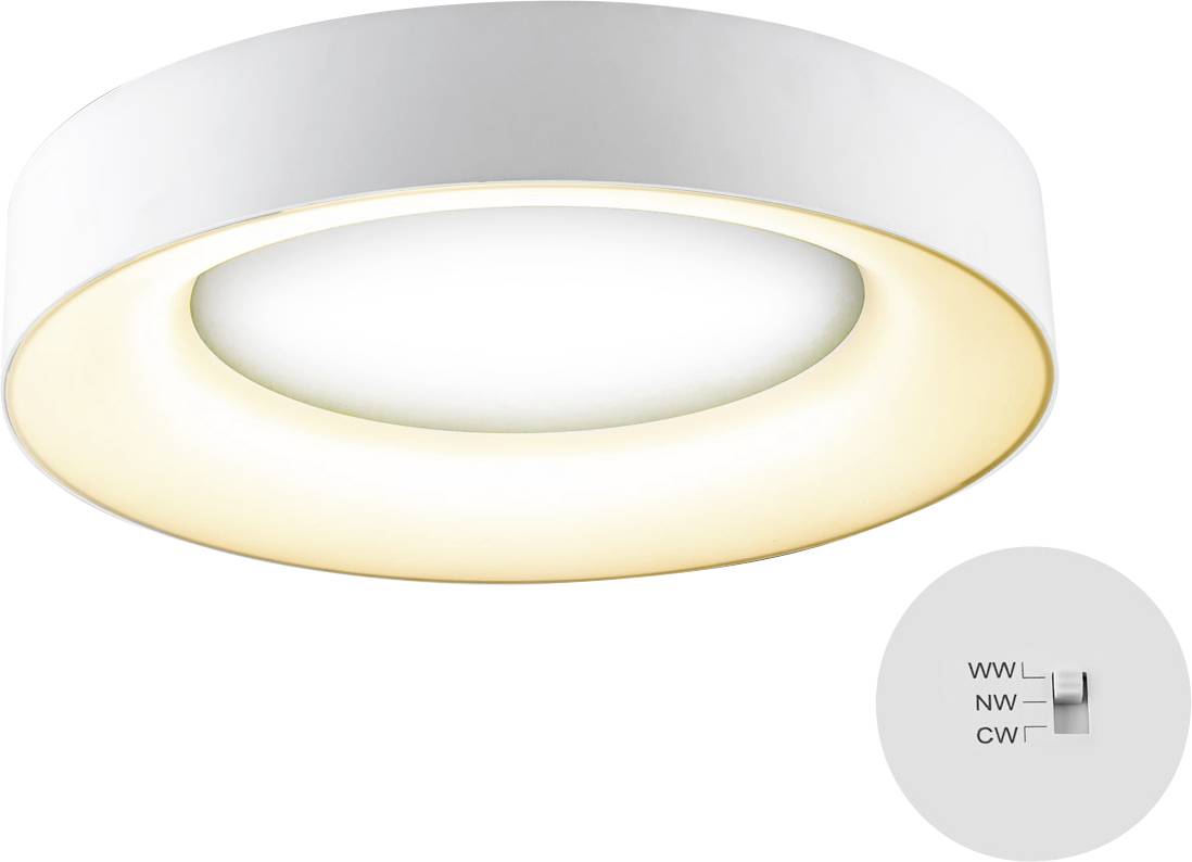 LED Anbauleuchte für verschiedene Anwendungsbereiche, wie z. B. flächendeckende, aber auch effektvolle Beleuchtungen in Flur, Wohnzimmer, Büro und vieles mehr. Aufgrund der gegebenen Schutzart und der UV-Beständigkeit kann die Leuchte auch im Außenbereich problemlos eingesetzt werden. Mit dem an der Rückseite angebrachten Schalter kann eine von drei möglichen Farbtemperaturen eingestellt werden. Die möglichen Farbtemperaturen und daraus resultierenden Lumen sind: 3000K (1950lm), 4000K (2350lm) und 5700K (2150lm). Durch den großflächigen Lichtaustritt entsteht immer eine sehr homogene Ausleuchtung.