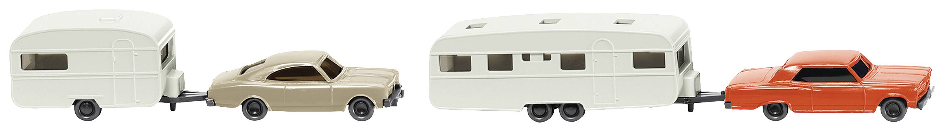 Wiking 092210 N PKW Modell Opel, Chevrolet Wohnwagengespann 2er