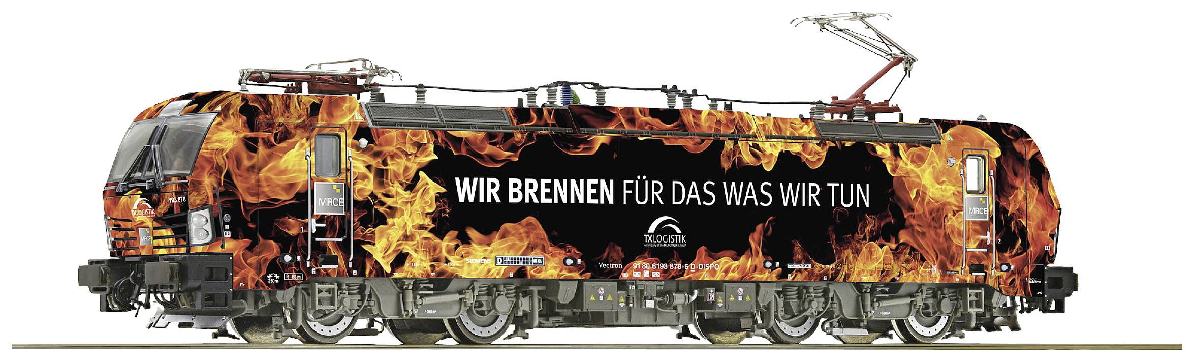 TX Logistik (TXL) hat im Dezember 2020 die Baureihen 182 und 189 im Zuge der Flottenvereinheitlichung durch Vectron Lokomotiven ersetzt. Das betraf auch den „Flammen-Taurus“ 182 572. TXL lässt das Design jedoch nicht verschwinden und hat jetzt den neuen „Flammen-Vectron“ 193 878 mit dem Werbespruch „Wir brennen für was wir tun“ auf die Schienen gestellt.