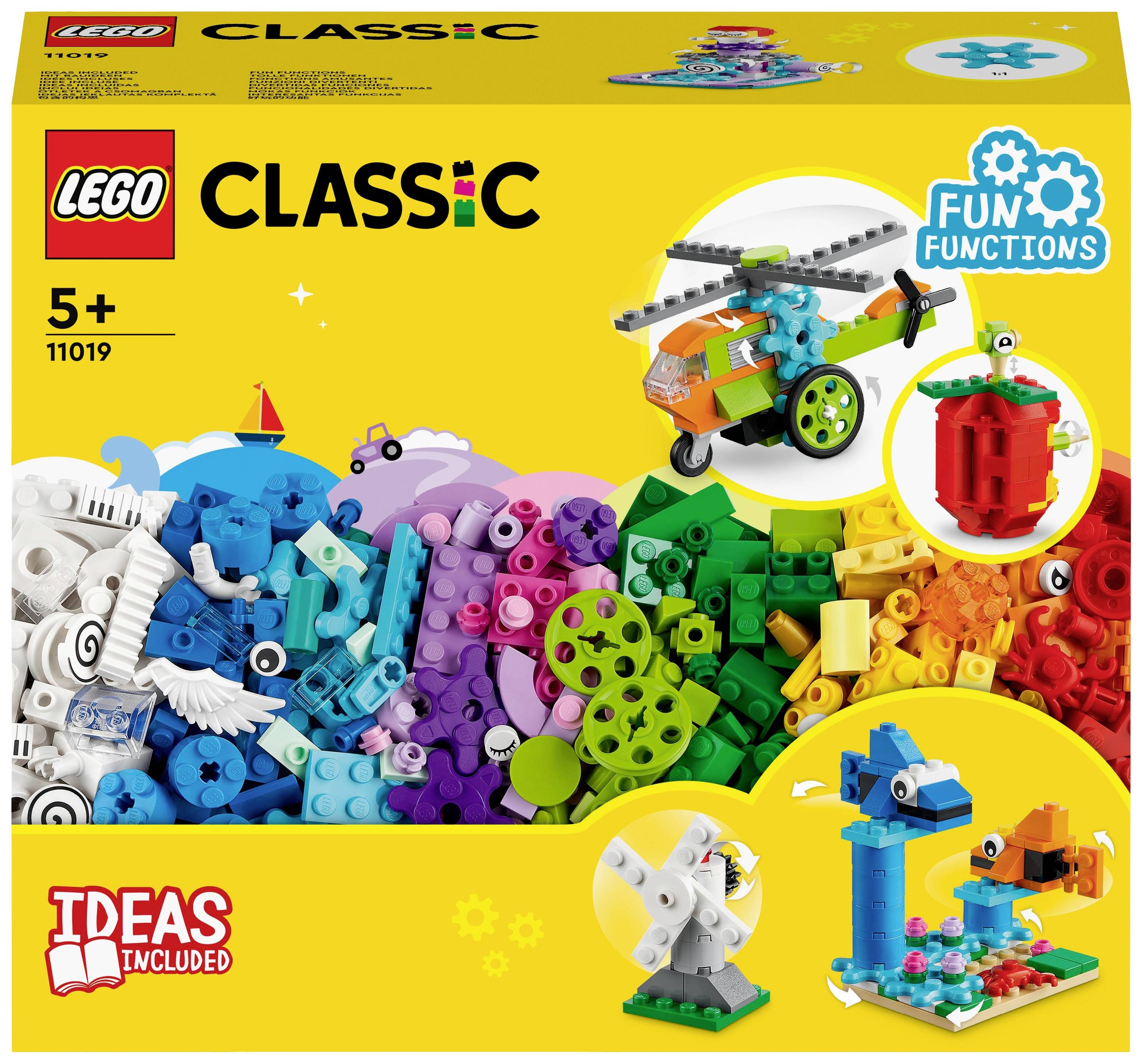 Das LEGO Classic Bausteine und Funktionen (11019) Konstruktionsspielzeug für Kinder ab 5 Jahren enthält eine bunte Auswahl an LEGO Zahnrädern und beweglichen Teilen sowie eine Bauanleitung für 7 lustige, baubare Spielzeuge mit zahnradangetriebenen Funktionen. Die Kinder können Modelle mit beweglichen Teilen bauen, von einer Pirouetten drehenden Ballerina bis hin zu einem Spielzeug-Hubschrauber mit drehenden Rotoren, bevor sie mit der Hand in die Tüte mit noch mehr LEGO Steinen eintauchen, um ihre ganz eigenen Kreationen zu bauen.