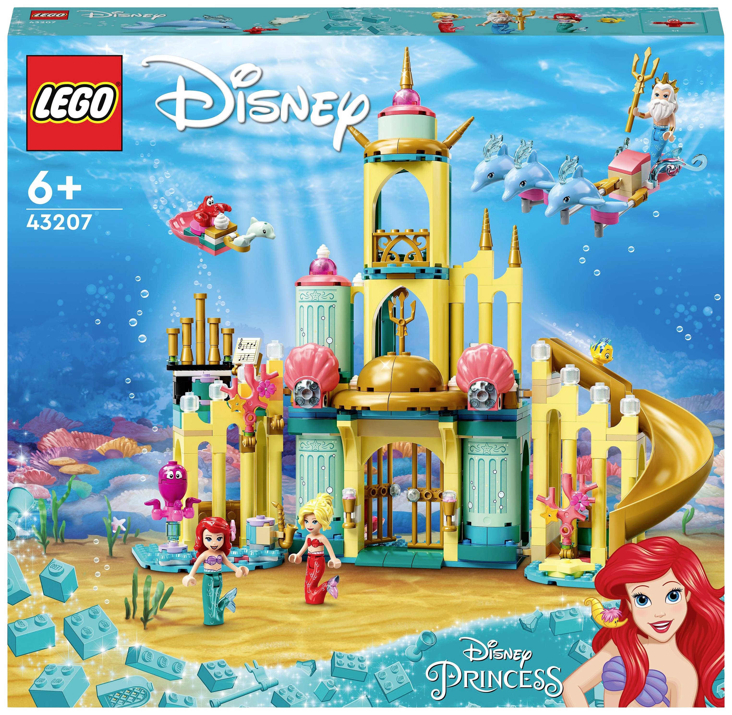 In dem LEGO Disney Arielles Unterwasserschloss (43207) erwarten Fans von Disneys Die kleine Meerjungfrau ein Abenteuer unterhalb der Meeresoberfläche. Mit den Disney Mini-Puppen Arielle die Meerjungfrau, Arista und König Triton sowie 6 LEGO Tierfiguren können Kinder schnell loslegen: Sebastian, Flunder und 4 LEGO Delfin-Figuren.