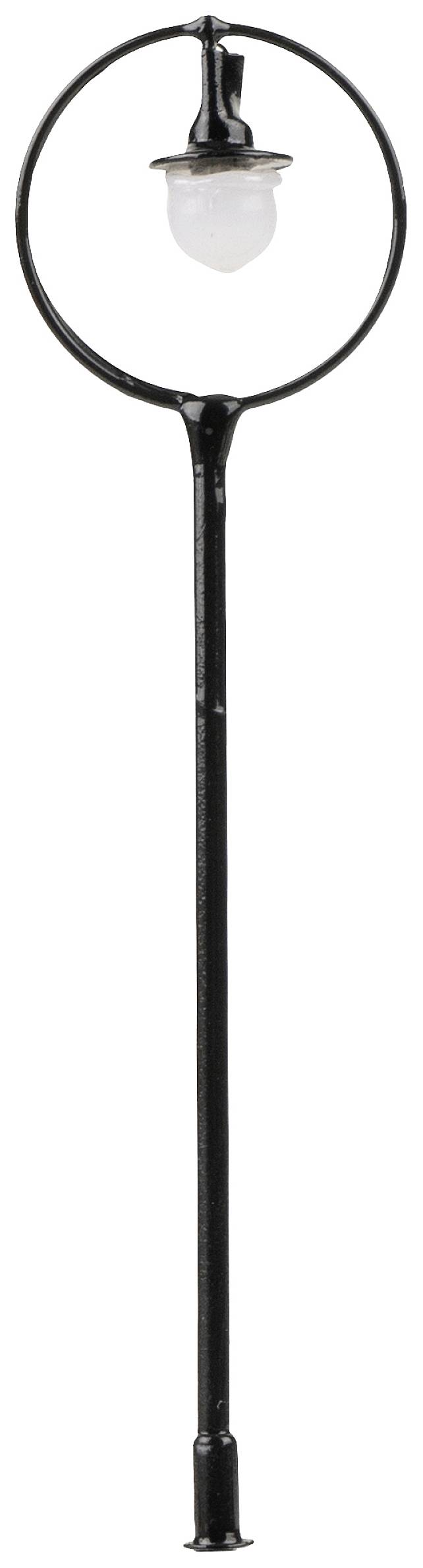 Vielseitig einsetzbare klassische Ringleuchte mit einem Mast aus Metall. Geeignet zur Beleuchtung von Parks und Stadtszenen oder auch von bahnnahen Szenerien, wie Bahnhöfe, Betriebswerke oder Gleisfelder. Die einflammige Leuchte ist mit langlebiger LED-Technik ausgestattet. Höhe: 75 mm.