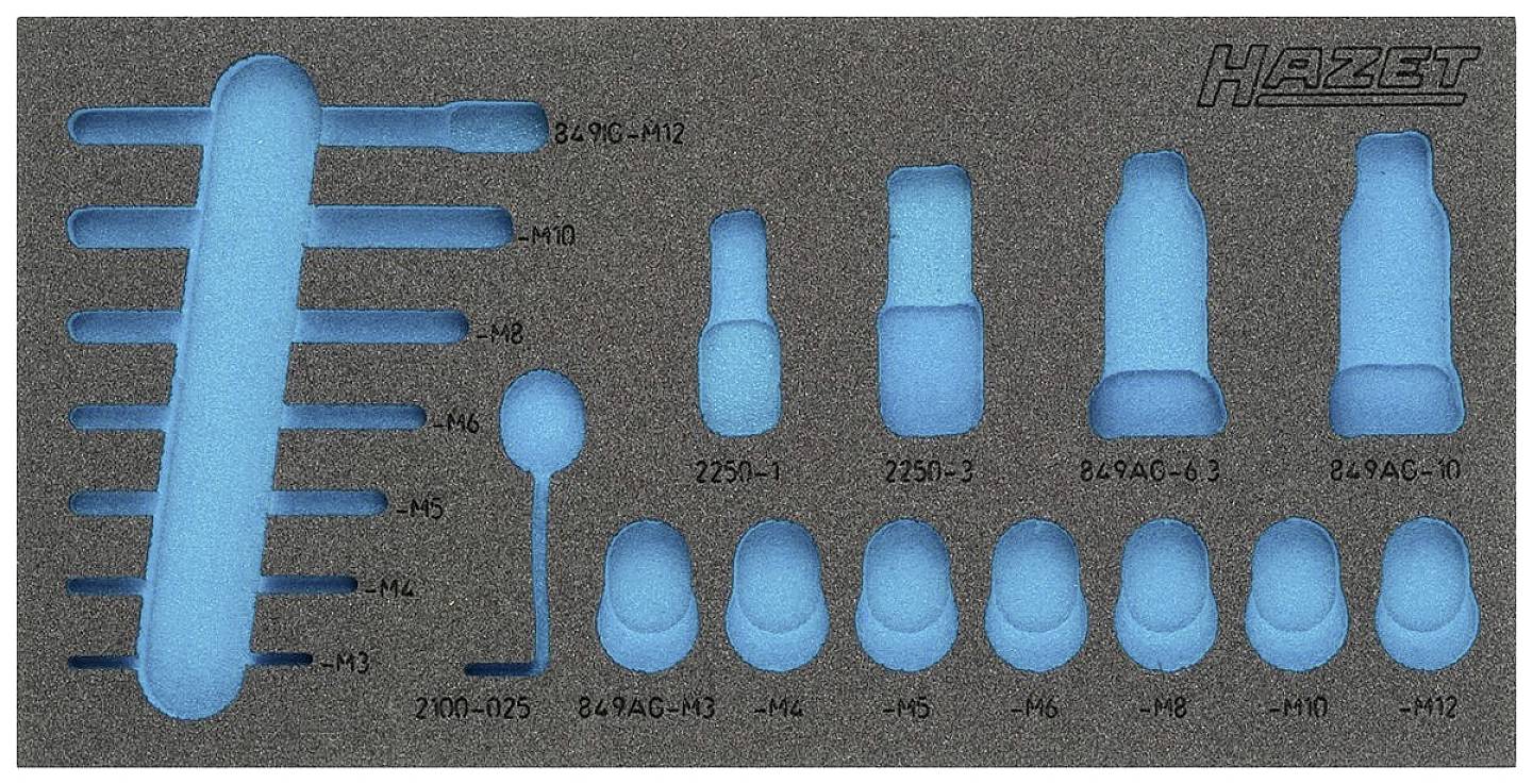 2-Komponenten Weichschaum-Einlage leer für 849 Made In Germany Abmessungen / Länge: 342 mm x 172 mm Ordnungssystem Größe: 1/3 (342 x 172 mm) / für HAZET 165-L