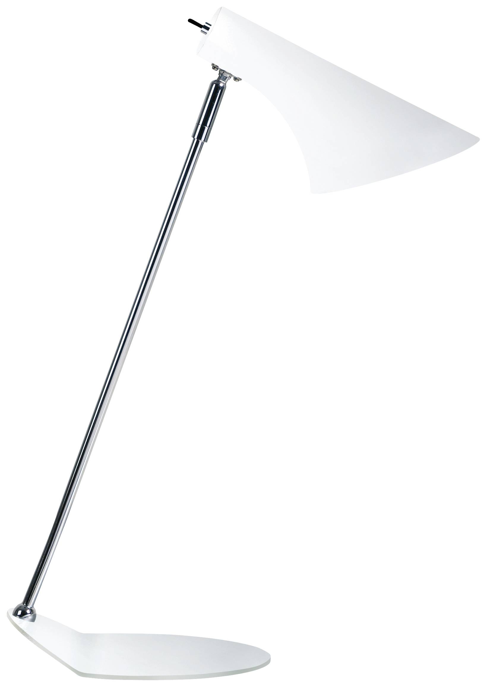 Klassische, zeitlose und moderne Tischleuchte. Vanila passt mit ihrer schlichten und eleganten Formgebung in die zeitgemäße moderne und stringente Inneneinrichtung. Sie ist eine Leuchte, die über keine überflüssigen Details verfügt, weshalb sie sich besonders für das Arbeits-, Wohn- und Schlafzimmer eignet. Vanila hat einen Kippschalter am Lampenschirm. Der Schirm und das Gestänge sind verstellbar.