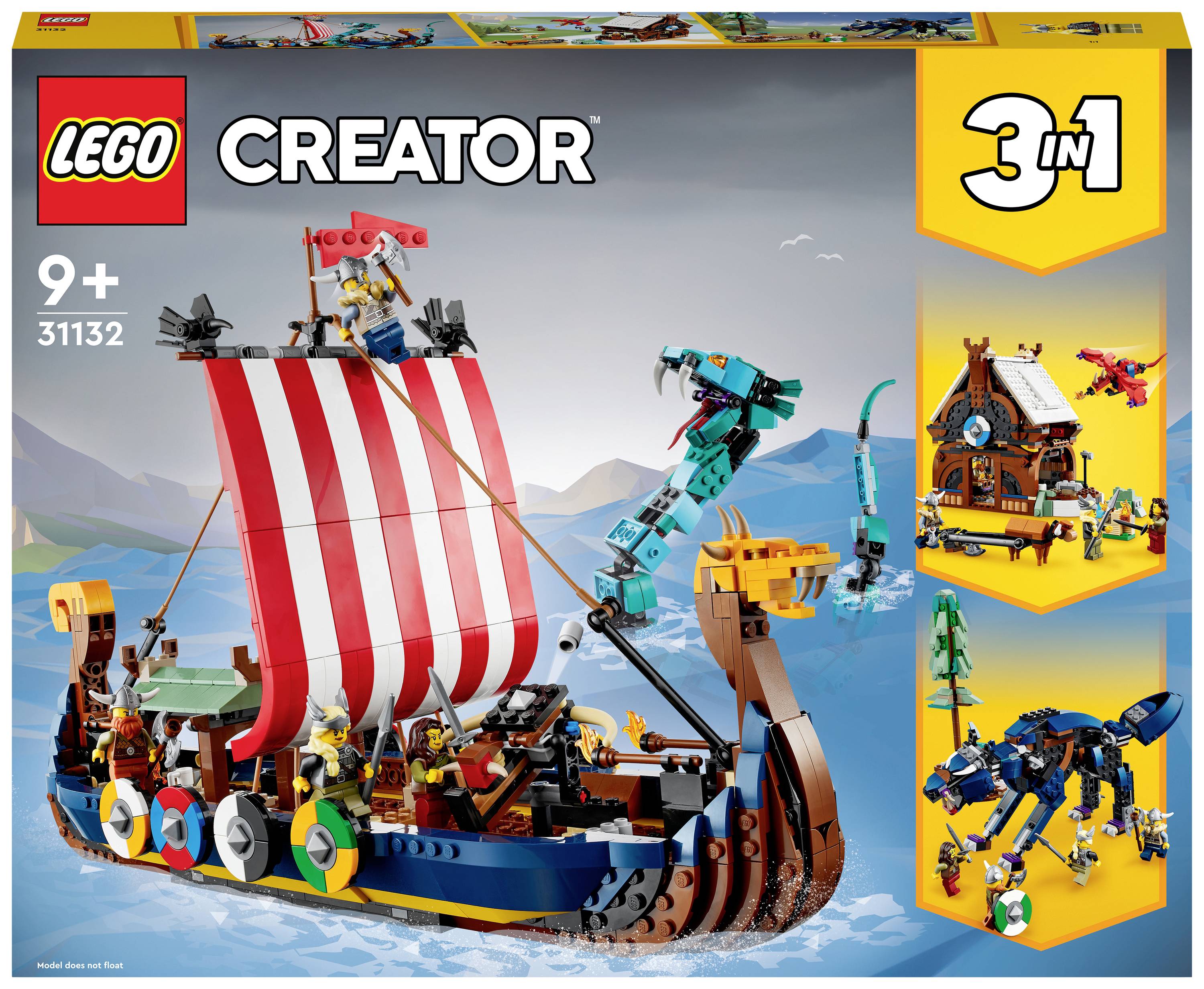 LEGO Creator 3 in 1 bietet Kindern alles, was sie brauchen, um unzählige Stunden Spaß zu haben, denn in jedem Set gibt es 3 verschiedene Modelle zum Bauen! Jedes detaillierte Modell kann auch auseinandergenommen und zu dem umgebaut werden, was sie sich erträumen. Wähle aus einer erstaunlichen Auswahl an 3-in-1-Sets, darunter Spielzeugschiffe, Häuser und U-Boote. Das LEGO Creator Wikingerschiff und die Midgardschlange ist ein tolles Weihnachts- oder Geburtstagsgeschenk für Kinder ab 9 Jahren.