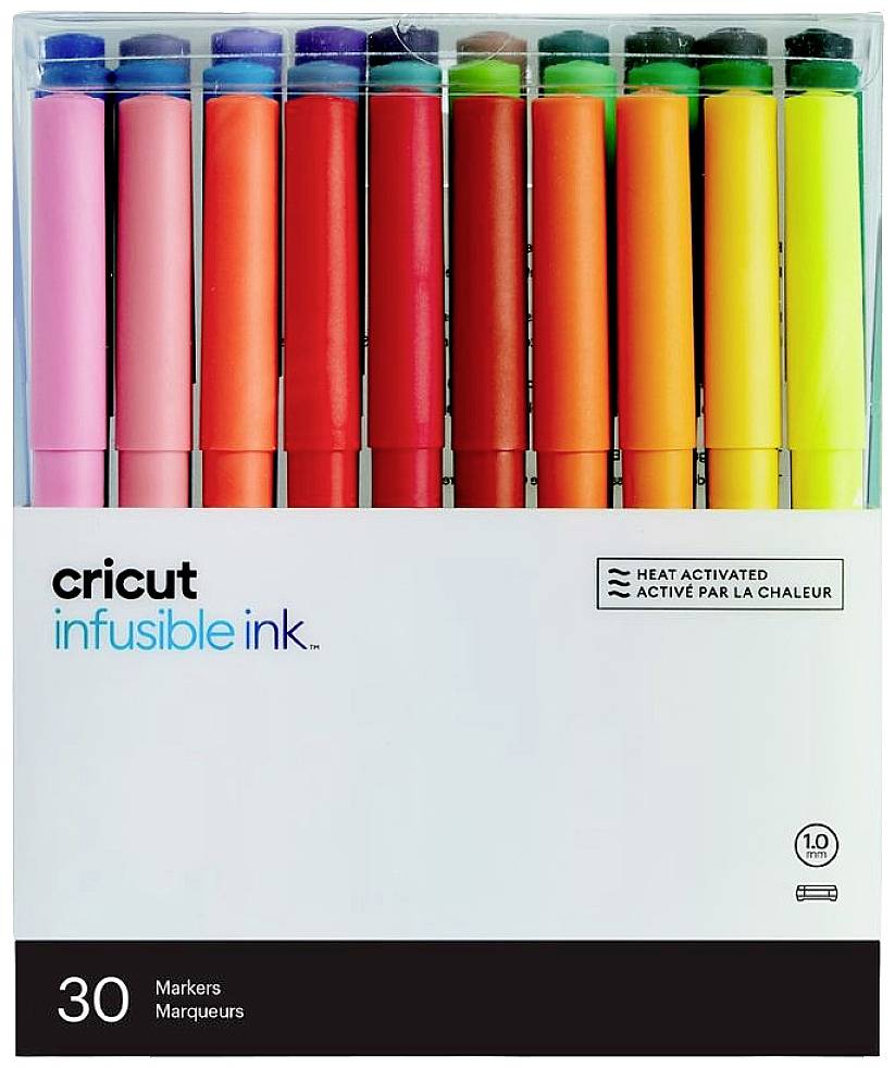 30 Marker mit mittlerer Spitze (1,0) in Rose, Bubble Gum, Dusty Rose, Fuchsia, Coral, Red, Paprika, Orange Peel, Sunflower, Butterscotch, Yellow, Mint, Light Green, Apple Green, Salbei, Green, Forest Green, Sky Blue , Etwas Blaues, Azurblau, Leuchtendes Blau, Marineblau, Flieder, Hellviolett, Aubergine, Violett, Grau, Dunkelgrau, Greige, Schwarz Erzeugt lebendige Transfers in Profiqualität, die ein Leben lang halten Erfordert einen kompatiblen Infusible Ink-Rohling (separat erhältlich) und eine Cricut EasyPress™ oder Heißpresse, die 205 °C (400 °F) erreicht Übertragene Tinten werden nicht abblättern, abblättern, verblassen, reißen oder knittern Zeichnen Sie benutzerdefinierte Designs und Texte für T-Shirts, Untersetzer, Babystrampler, Tragetaschen und mehr Auf Wasserbasis, säurefrei, entspricht ASTM D-4236. Nicht zum Verzehr oder zur Anwendung auf der Haut bestimmt. Nur für Erwachsene. Für Maschinen der Cricut Maker®- und Cricut Explore®-Familie (Cric