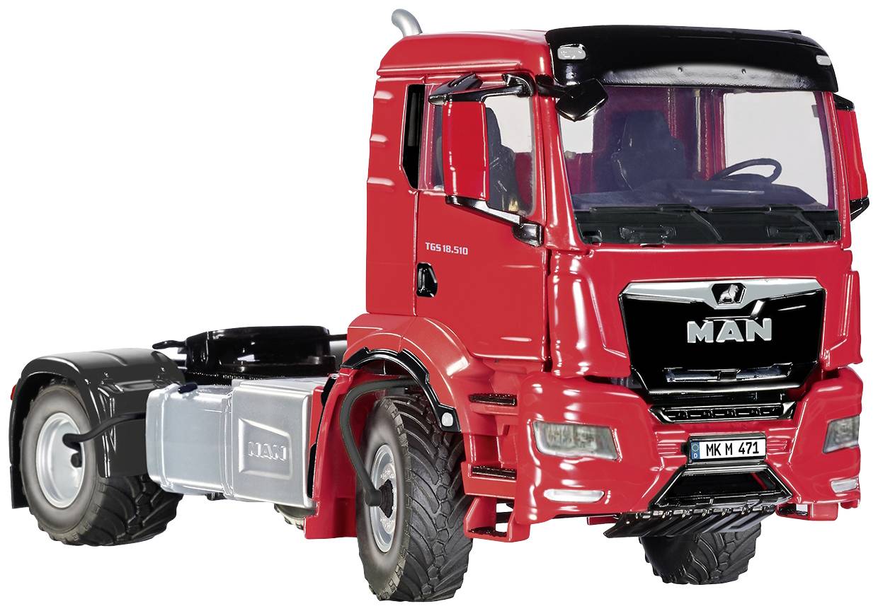 Präzisionsmodellbau jetzt auch im Lkw-Bau – die 1:32-Premiere startet mit der neuesten MAN-Generation. Die Traditionsmodellbauer von WIKING stellen erstmals ein Lkw-Modell in 32-facher Miniaturisierung vor, mit dessen Realisierung die Modellbauer ihrer Philosophie und ihren Ambitionen im landwirtschaftlichen Maßstab gerecht werden. Es sind hierbei die kleinen Details, die bei WIKING immer wieder Spaß bereiten: So findet sich der neue MAN TGS 18.510 4x4 zum Debüt im gleichen Lack wieder wie einst die „Ackerdiesel“ unterwegs waren – eine Reminiszenz an die früheren MAN-Schlepper der 1950er-Jahre! Und auch das Kennzeichen „MK-AD 510“ kürzelt in der Mitte freilich etwas versteckt, aber mit einem Augenzwinkern die Ackerdiesel-Verwandtschaft. Vorbild ist der topaktuelle MAN TGS 18.510 4x4 Euro 6d. Gerade diese Zugmaschine, die zur Premiere in der Ausführung mit permanentem Allradantrieb miniaturisiert wird, schlägt eine Brücke zum Thema Landwirtschaft. Dort finden auch die Vorbilder dieser Gespanne ihren Alltagseinsatz, weil sie dort immer häufiger zwischen Feld, Straße und Weiterverarbeitung hin- und herpendeln. Dabei überzeugen sie mit der gewünschten hohen Nutzlast, sind auf dem Feld aber zugleich traktionsstark unterwegs.